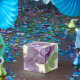 En stor bröllopsaffär med en blommigt med finare-vattenfärg. Anpassa med bröllopsdagens meddelande.