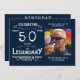 Förklaring 50:e födelsedag Fotoblå Vintage Inbjudningar