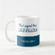 Personlig pension kaffe mugg med utslag av humor. Mugg har det roliga pension-citatet "The Legend has Retrött", som är skrivet i fet, havsblå typografi. Om du vill göra presenten unik ställs redot in så att du kan lägga till den pensionerades namn (lämna rutan tom om du inte vill ha namn). Den här designen har en smart palett av havets blått och vitt och ett enkelt färg-block rand. Använd och roligt för en väns- eller medarbetares make eller pension-souvenir.