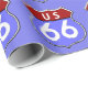 En vektorbild (för högkvalitativa utskrifter) av den legendariska vägskylten 66 på papper förpackning.