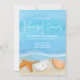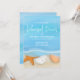 Den här designen har en enkel kallelse med vattenfärgsblått nautiskt sommarsemestrum med kusttema, med QR social-kod Facebook-evenemangssida för party-information, för en kuststrand vid party firande, med ett sommarhavsområde i vatten, en vismisk roligt som firar att komma samman, ett kalligrafiskt skript för trendig, ett sött färgstarkt snyggt blåvitt, med en stjärnsand årstidsbetingade orangar, enkel minimalistisk typografi, snäcka vågar och kusthav, ett hav som temat parternas inbjudan