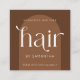 Modern boho-förlängningar efterhandskort med modernt typsnitt, hårvårdssymboler och terracotta färg-system. Det moderna teckensnittet heter "hår" och "eftervård". På kortets baksida finns ikoner och vårtråd för hårförlängningar (kan användas för naturliga hår eller hårförlängningar). Du kan anpassa det här bohemiska håret efter vårdkort med ditt varumärke färg, logotyp och affärsinformation för att göra dem till dina egna.