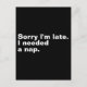 "Förlåt att jag är sen." "Jag behövde en tupplur." Lustigt att säga "T shirt shirt" För alla som anser att sömn är en prioritet, inte ett privilegium. Visa ditt sinne för humor genom att bära den här grundläggande coolan stil. för Black and White Contemporary Art Älskare. Jag är säker på att det kan starta många samtal och hjälpa till att bryta isen. Den här konstiga designen är en underbar presentidé för anställda, kolleger, medarbetare, chefer, övervakare, vänner eller familj, och ger också en underbar födelsedag, helgdag eller Julklapp. Fira tillfälle med personlighet och bekvämlighet! (DU KAN ÄNDRA OCH ANPASSA DEN HÄR TEXTKONSTRUKTIONEN ELLER NÅGON TEXT SOM DU VILL HA I TEXTIFY-LAGRINGEN!).