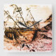 Ett gammalt skepp som har sköljts upp på Oregons kust och nu är förlorat för alltid. Detta är en illustration med penna och bläck av ett gammalt skepp som har sköljts upp på en strand någonstans längs kusten, kanske sjönk det och strömmen drog det upp så att det drev omkring tills det fastnade på stranden. Denna fyrkantiga akrylklocka kommer att bli en underbar väggdekoration.