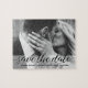 Anpassa den här unika sparningen av datumidén. Använda ett pussel för att tillkännage ditt meddelande. Använda ett foto och din datuminformation för bröllop.