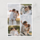 Notera din kärlek-berättelse i ett kollage av omhuldade stunder med vår Förlovning Photo Bröllop spara datum! Det här unika Spara datumkortet har en enastående samling fem av dina favoritfoton på förlovningen, som är perfekt placerade för att fånga kärnan av din resa till "Jag gör". Varje foto visar en del av din kärlek-berättelse, från de söta stunderna av skratt till de ömma omfamningar som delas mellan dig och din partner. Elegantens utformning och layout kompletterar dina foton och skapar ett sammanhängande och visuellt fängslande meddelande som lämnar ett bestående intryck på dina gäster.