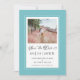Aqua och white Save Date Förlovning Photo bröllop-kort har en vacker gräns i chic aqua som innehåller en elegant petite white gräns. Kalligrafi och manus är kol-grått på vit bakgrund. En modern mall för datum och år kompletterar den unika kalligrafiutformningen. [OBS! visningen för datum i bröllop visas, användor lodrät pub eller raden som finns ovanför \ på en tangentbord eller på din smarta enhet med speciella tecken. Du kan också anpassa med valfritt annat tecken.] Anpassa med ditt favoritfoto för förlovning och annonsera din stora dag! (För att bild ska få bästa möjliga placering bör du använda ett fotoredigeringsprogram verktyg till mitten och skörd INNAN det laddas upp på Zazzles webbplats.) Kortets baksida är en fast akva. Andra formgivningar finns i den här sviten. E-post invitationsuites@gmail.com med frågor eller anpassningsbar. Se till att samlingslänken på den här sidan visas om du vill visa alla matchande objekt!