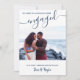 Anpassningsbarnas meddelande om fotoförlovning. Fotomallen är inställd så att du kan lägga till ett eget foto, som visas som utfall i liggande format för fullt. "ilagd" är skriven i handskriven typografi i elegant och resten av texten är helt redigerbar. Tillkännagivandekortet lyder "så att lycklig kan meddela att vi är engagerade [förlovningens datum] | bröllop-datum som ska följa efter [ditt namn] och mallen har konfigurerats så att du kan anpassa som du vill. En enkel, modern, minimalistisk utformning som dina nyheter innan du kommer runt för att organisera ett party eller fastställa datumet i bröllop.