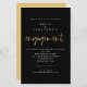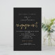 Enkel svart och Guld Förlovning Inbjudan. EN STÖRRE storlek 5,5" x 8,5" på budgetnivå, NOTERA ATT DE VALUTA ENVELOPES ÄR EN LITEN STÖRRE STORLEK VID 6,75" x 9" ca. Modern minimalistisk stil i klassisk svart, guld och vit typografi. Förlovningen sätts in i ett modernt handskriftsformat stil. Anpassa enkelt resten av texten till din egen. Du kan också ändra bakgrund och färg om du vill genom att anpassa texten ytterligare.