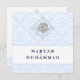 islamisk blå bakgrund med vitt eller natmodersmjölkmönster och en cirklad kalligrafi av Bismillah.