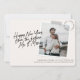 Berätta om din förlovning under det nya året med vårt enkla Spara datumfotokort med en modern beröring. Rubriken med en namnteckning stil-typografi lyder "Gott nytt år från framtidens Mr & Mrs", bredvid en fototryckt stil. Anpassa fram och tillbaka med din information.