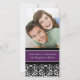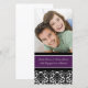 Förlovningsannons Fotokort i elegant mörklila, svart och vit klassisk blomsterdamaskmönster, kan anpassas med era namn, det perfekta sättet att meddela er förlovning till vänner och familj. Mönstret finns i ett brett utbud av matchande bröllopsprodukter.