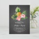 Rustiska och tropiska förlovningsfester med vattenfärgade illustrationer av rosa hibiscus, ananas och löv på faux chalkboard-bakgrund med samma färg som tropiska mönster på baksidan. Denna sommarinbjudan är fullt redigerbar för alla tropiska och hawaiiska tematiska evenemang. Anpassa genom att lägga till information.