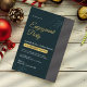 Fira din kärlek-artikel med den här Eleganten Blue Grönt Förlovningsfest-inbjudan, designad med djupa smartoner, skriptaccenter i guld och ren modern layout. Perfekt för ett klassat firande anger inbjudan tonen för en oförglömlig förlovning-händelse. Funktioner: Skript för Elegant parad med modern serif typsnitt Luxurious navy-grönt-bakgrund med guld-markerad Redo-to-Edit-information, inklusive OSA avsnitt