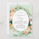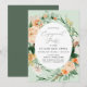 Vackra inbjudningar till förlovningsfesten med en elegant modern neutralt pastellfärgad botanisk blommigt grey ram i mjuka jordtoner av persika, orange, mjuk , och mängder av grönt från sage grönt till ljusa och djupare gröntar. Din personlig visas i en förhöjd typografiklayout som placerar hedersgästen framför och mitt.