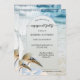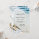 En unik inbjudan till förlovningsfesten med två vackra gardiner på en strand med en bröllop-slöja, pärlor och snöre. På baksidan finns en QR-kodmall (valfri) som gör det enklare för gästerna att ta sig till OSAN.