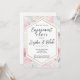 Vi presenterar inbjudan till den traditionella perfekten blommigt förlovningsfest för dem som vill ha ett litet klassiskt elegans med en modern twist! Inbjudan innehåller en diamantlik sexhörning i mitten, omgiven av ett vackert mönster av rosa och blommor med lush grey. Själva hexagonen är vit med ett guld gräns, skapar ut den och tillför en lyx till den övergripande utformningen. Det som gör denna inbjudan unik är den pastellbehandling och abstrakt som ges till de traditionella blommorna. Resultatet är en uppfriskande utformning av en klassisk utformning, ge en contemporary och ett trendig. Det är perfekt för dem som uppskattar traditioner men vill lägga till sitt eget unika stil till sin speciella dag. Texten placeras på ett elegant sätt i den diamantlika hexagonen, skapar den lätt att läsa och lägger till till till den övergripande elegansen i inbjudan. Kombinationen av det klassiska blommönstret och det moderna designtemat inslag gör den här inbjudan perfekt för alla förlovningsfester. Oavsett om du har en formell eller informell firande är det säkert att den här inbjudan till förlovningsfesten för blommigt imponerar på dina gäster och anger tonen för din speciella dag. Med sin timelösa skönhet och moderna kant är denna inbjudan perfekt för par som vill skapa ett påstående samtidigt som de håller sig till stil.
