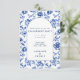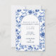Fira din förlovning med den här vackra blommigt-temade festinbjudan, som har en invecklad botanisk design som ram visar händelseinformationen i elegantens marinblått. De blommor som inspirerats av vintagen ger en tidlös beröring, perfekt för en klassad och sofistikerad förlovning firande. Alla viktiga detaljer, inklusive datum, tid och plats, visas elegant på framsidan och ser till att gästerna har allt de behöver snabbt. Den här utformningen ger ett förfinat och elegant utseende, perfekt för par som vill ha ett snyggt till sin speciella dag.