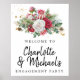 Vackra röda och vita rosor är boplats i grön järnek och röda bär. Röda och vita runda julgransprydnader lägger till en festlig touch. Guld sprutad konfetti ger en lyxig touch. Detta förlovningsskylt är en del av en förlovningssamling som låter dig skapa unika inbjudningar och festliga dekorationer.