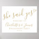 Förlovningsfest skylt i guld - Hon sa ja