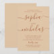 Denna förlovningsfestinbjudan håller fokus på namnen, med ett stort flytande typsnitt som sticker ut direkt. Layouten är enkel och lätt att läsa, så alla viktiga detaljer förblir tydliga utan att kännas trånga. Den varma sandfärgade bakgrunden ger en mjuk, naturlig ton som fungerar bra med neutrala och varma färgpaletter. Perfekt för förlovningsfester eller välkomstfiranden där du vill ha något rent men ändå personligt. Passar särskilt bra med moderna, minimala och neutrala bröllopsstilar, liksom avslappnade fester med varma toner. Fungerar bäst för sensommar- och höstfiranden, men kan användas året runt tack vare den enkla designen. Ett bra val om du vill ha något rent, varmt och fokuserat på typografi snarare än dekoration. Finns tillgäng
