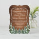 Inbjudan till förlovningsfest. Rustiskt brunt trä, snöbakgrund och snöskog. Mysiga vintagen land stil. Det finns fler artiklar i vår butik i stil. Du kan redigera designen ytterligare, ändra färg, typsnitt och lägga till extra genom att klicka på länken "anpassa ytterligare".