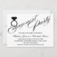 © Socialite Designs. Vår vackra text med skript/kalligrafi, med svartvit förlovningsfest på vit bakgrund, och inslag med diamant ring, tillför en liten elegans till den här förlovningsfestens inbjudan. Byt enkelt ut malltexten mot din speciella händelseinformation. Diamanten ring kan storleksändras, flyttat eller raderas till kostym.