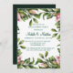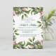 Fira din speciella dag med den här tidslösa bröllopsinbjudningen, som innehåller en handmålad mörk grönt andedräkt som är försedd med mjuka rosor. Den lush botaniska teckningen framkallar romantik och elegans, perfekt för trädgård, rustik eller vintage-temat bröllop. Den här inbjudan är utskriven på en texturerad, benvit papper för en raffinerad, hantverksmässig känsla, och blandar naturskönhet med hjärtlig charm.