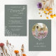 Gratulera till din kärlek-berättelse med den här eleganten, Förlovningsfest för skuggblommor. Framsidan har en mjuk blommigt med delikata fjärilar, anpassade med namn, händelsedatum, plats och OSA. På baksidan finns det utrymme för att visa ditt favoritfoto, som är vackert utformat av matchande blommigtar, med den vackra frasen "Framtiden, herr och fru" under den. Perfekt för förlovningsfester i trädgård, boho, rustika, vår eller sommar.