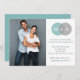 Moderna Förlovningsfestinbjudan med monogram och foto. Ett enkelt men modernt inbjudningskort för en förlovningsfest med foto. Det har sammanflätade blå och grå cirklar för den blivande brudens och brudgummens initialer.