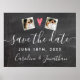 Låt alla veta att de ska Spara datumet med denna rekvisita/ skylt. Håll den under din förlovningsfotografering eller häng den på väggen under en förlovningsfest. Designen har 2 av dina foton och handstilsbokstäver mot en falsk tryckt svart krit tavla bakgrund. Roligt och modernt men ändå trendigt och chic - kompletterar så många av dagens bröllopsstilar.