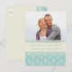 Förlovningsfotots postkort i elegant ljusblå turkos och vit krämfärgad vintage stil, kan anpassas med era namn, det perfekta sättet att meddela er förlovning till vänner och familj. Finns i ett brett utbud av matchande bröllopsprodukter.