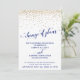 Denna svits utmärkande drag är den moderna typsnittsfonten som är utsmyckad med hjärtan och en bakgrund med guldkonfetti. Om du befinner dig i den situationen att du behöver informera dina bröllopsgäster om att du har varit tvungen att ändra datum för det stora evenemanget, så är detta ett festligt alternativ. I denna produkt användes vacker kalligrafi för att skapa en grafisk representation av orden "ändring av planer". Ordet "kärlek" placerades på baksidan och kan tas bort om du föredrar det. Använd mallfälten för att lägga till dina personliga uppgifter och gör denna festliga, moderna design till din egen. All text - både grafik och redigerbar - visas i marinblått. Vänligen hör av dig med eventuella specialförfrågningar eller för hjälp med anpassning.