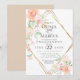 VIGSEL- OCH FÖRLOVNINGSINBJUDAN | Akvarellblommor i pastella nyanser av korall, rosafärg, gul, krämvit och ömt gröna blad bildar en kaskad runt en geometrisk, fasetterad diamantformad ram i guld. Baksidan har en kompletterande, koordinerad färg. Anpassa text, typsnitt, färg och storlek. Vi har skapat denna mall för att göra det enkelt för dig att anpassa den med din egen information. Detta är en del av en komplett bröllopssvit med matchande bröllops-, baby shower- och andra evenemangskort designade av WhimsicalArtwork™.