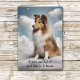 Detta är ett enkelt, men hjärtligt sympatikort för någon som nyligen har borttappad en Shetland Sheepdog. En vacker bild av en Sheltie omges av moln i ett ljusfyllt himlar. I texten på framsidan står det: "Det har sagts att allt bra hundar går till himlen", och känslan fortsätter inuti. All text, inuti och ut, kan lätt ändras till vad du vill.
