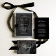 These sophisticated and modern black wedding invitations feature formal white script calligraphy and classic white text, while the back of the invitation has a scannable QR code so guests can RSVP or visit your wedding website for details. An updated contemporary spin on a traditional, elegant layout.