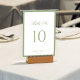 Guide your guests with timeless elegance using this classic sage green wedding table number. Featuring a clean white background, soft sage green border, graceful script heading, and a bold, easy-to-read number, this design blends traditional charm with a minimalist aesthetic. Perfect for classic, formal, garden, or modern weddings, this table number coordinates beautifully with sage green stationery and décor.