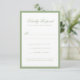 This formal classic sage green wedding RSVP card features elegant script typography framed by a refined border for a timeless, sophisticated look. The front provides a clean, easy-to-read response layout, while the back showcases a personalized monogram and wedding date in soft sage green. Perfect for traditional, garden, or classic weddings, this RSVP card coordinates beautifully with matching invitations and stationery suites.