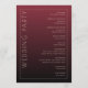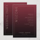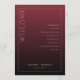 This elegant wedding program features a vertical layout with a sophisticated maroon gradient background, transitioning from light to dark. The design includes crisp white borders and text, creating a formal and polished look. On the left side, bold serif typography welcomes guests, while the right side lists ceremony details in an organized manner. The overall style is traditional and refined, perfect for a classic wedding celebration.