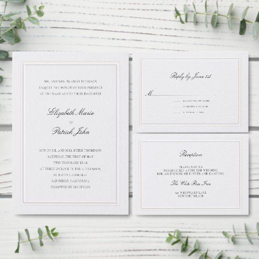Serve your wedding feast in timeless style with this Elevated Wedding Menu, featuring a refined double frame design and classic calligraphy-style typography. Set on a soft pearl background with a subtle watercolor paper texture, this menu brings elegance and sophistication to every table.