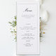 Perfect for formal dinners, black-tie events, garden receptions, or classic celebrations, it beautifully displays your starter, entrée, dessert, and beverage selections with clarity and style.