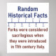 Historien är fascinerande. Visa er fascination med detta historietänkande: Forks ansågs vara uppoffrande när de infördes på 1100-talet. Underbar för trivia och fläkt i historieböckerna.