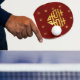 Formar det dubbla lyckasymbolet för guld i hjärta pingisracket