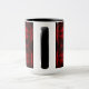 Formas em vermelho 'flutuando' sobre fono preto. mugg