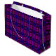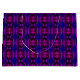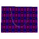 Inga estampado, os traços de azul rosado ou rosa azulado geram formas que parecem flutuar sobre um tipo de espaço azul ou escuro, ou sobre um emaranhado de pequenos traços rosa e azul.