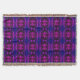Inga estampado, os traços de azul rosado ou rosa azulado geram formas que parecem flutuar sobre um tipo de espaço azul ou escuro, ou sobre um emaranhado de pequenos traços rosa e azul.