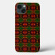 Neste estampado, os traços de cor avermelhada e esverdeada geram formas que parecem flutuar em um tipo de espaço verde ou escuro, ou sobre um emaranhado de traços verdes e vermelhos.