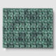 Tryckt med bilder i form av rektanglar eller fyrkanter i grått i grönten färg och prickar, skriv smutsigt eller falskt kol.