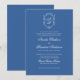 Formell blå Löv Monogram-Vapensköld och skript Brö Inbjudningar