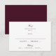 Ett formellt bröllopssvarskort designat för att samordna med den burgunderfärgade bröllopsinbjudningskollektionen med skrivstil. Detta eleganta svars kort har en krispig vit framsida, förfinad burgundertonad typografi, ömtåliga skrivstilaccent och en rik vinröd baksida för en sofistikerad, romantisk finish.